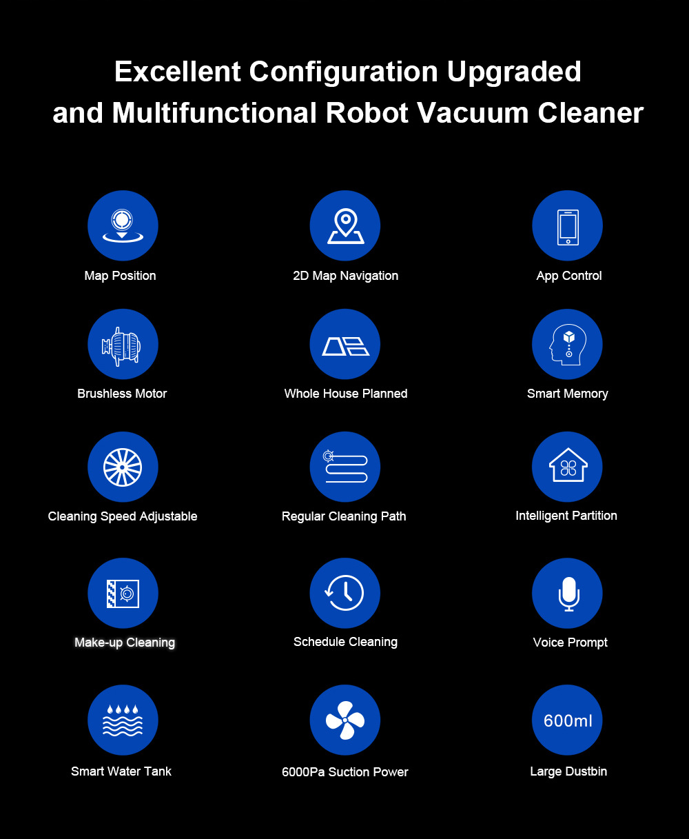 1. Le robot peut détecter l’ensemble de l’environnement, puis construire la carte dans la CPU pour qu’il effectue le nettoyage avec le plan d’une pièce après l’autre.