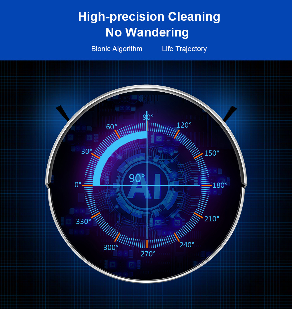 2. Le robot dispose de mémoire pour savoir où il a été nettoyé, alors qu’il n’a pas été couvert, ce qui fait qu’une couverture unique est plus de 98%. Le taux de répétition du chemin de nettoyage est d'environ 1%.