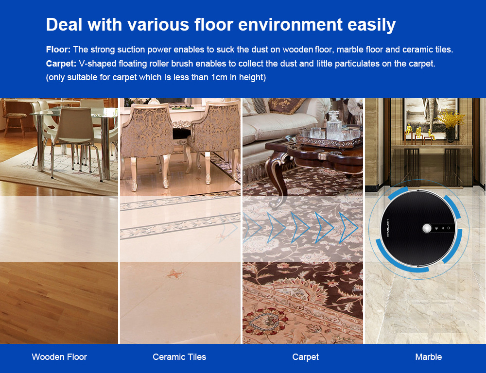 3. Appliquez sur différents planchers: tapis bas / dur d'une hauteur maximale de 1 cm, bois franc, carreaux de céramique pour la maison, la chambre d'hôtel et le bureau.